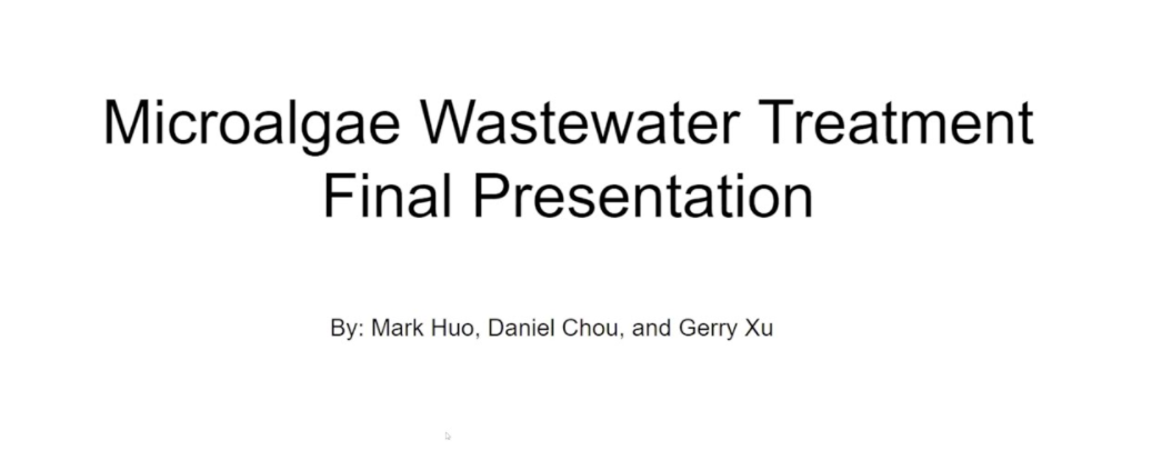 Microalgae Wastewater Treatment Presented by Mark Huo,Daniel Chou, and Gerry Xu, Wency Li.