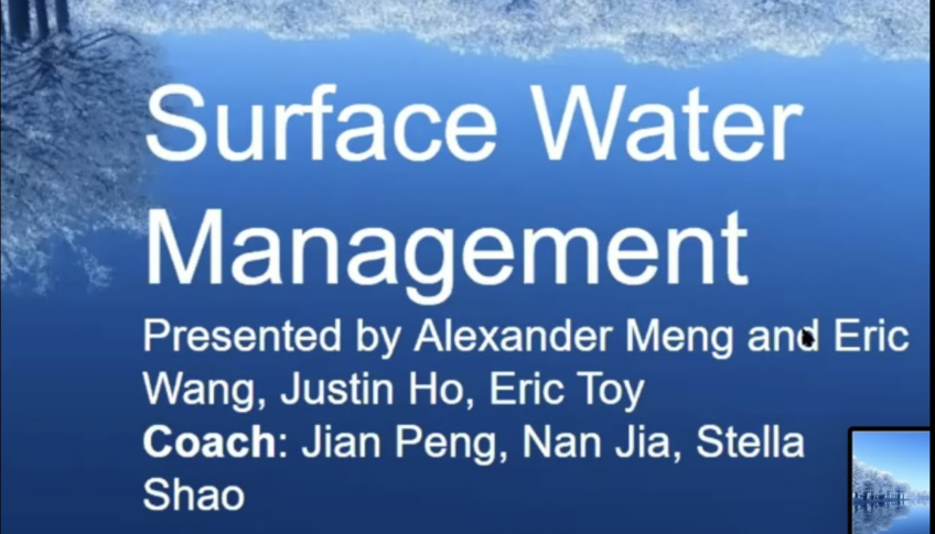 Surface Water Management Coach: Jian Peng, Nan Jia, Stella Shao. Presented by Alexander Meng; Eric Wang; Justin Ho; Eric Toy.