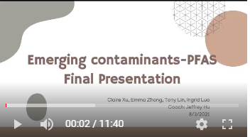 Emerging Contaminants-PFAS Coach by Jeffrey Hu Presented by Claire Xu; Emma Zhang; Tony Lin; Ingrid Luo.